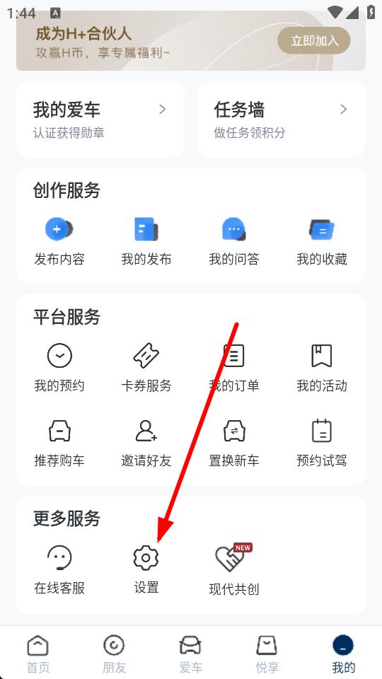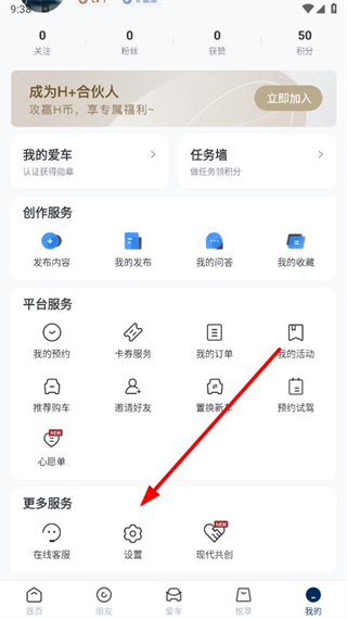 2、在个人页面更多服务板块,点击设置按钮进入设置界面。