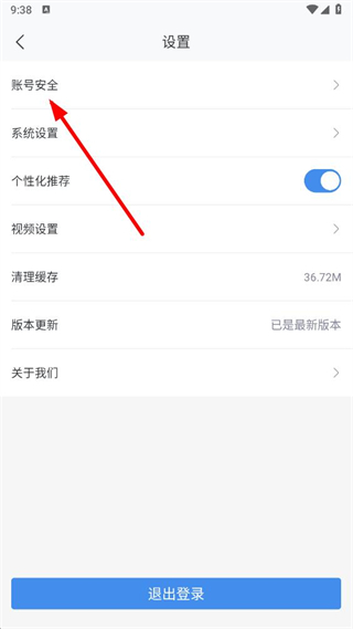 3、在设置页面,点击账号安全选项,进入账号安全页面。