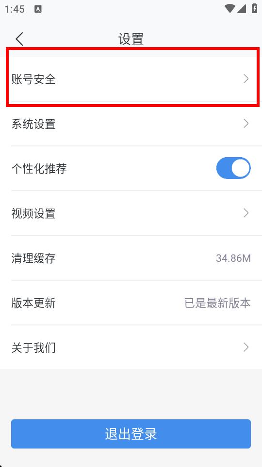 3、在设置界面中,点击账号安全进入账号安全页面。