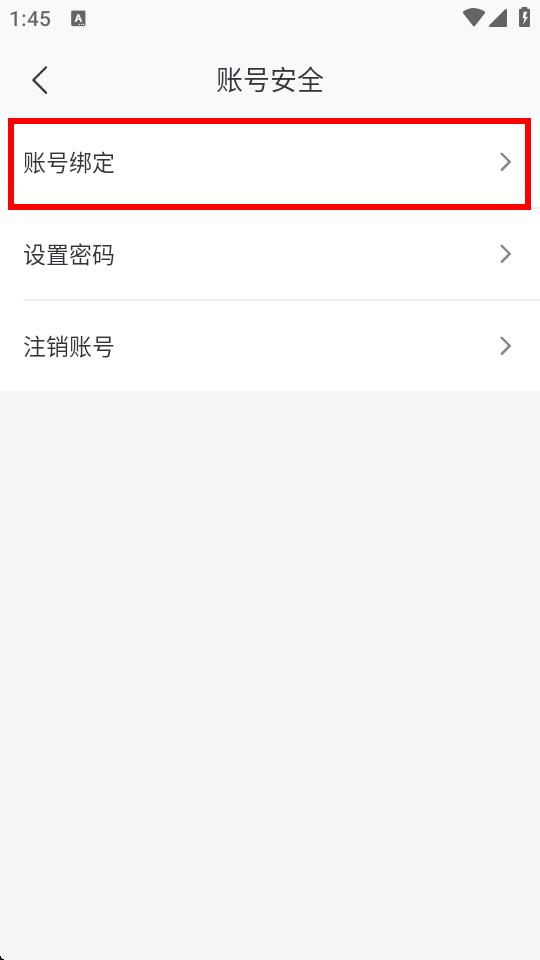 4、在账号安全页面,点击账号绑定进入账号绑定界面。