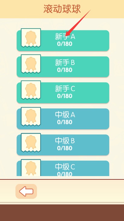 1、进入游戏界面后首先选择适合的难度级别,确认后开启滚动球球挑战之旅。