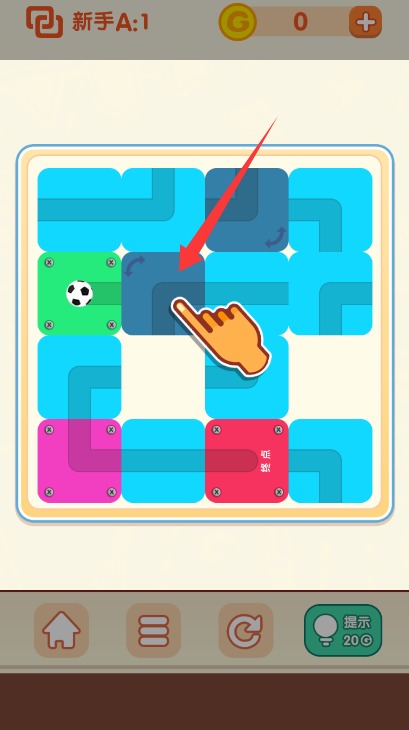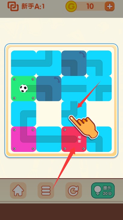 4、拖动方块调整其位置布局,引导球球沿着通道顺利滚动至终点完成通关。