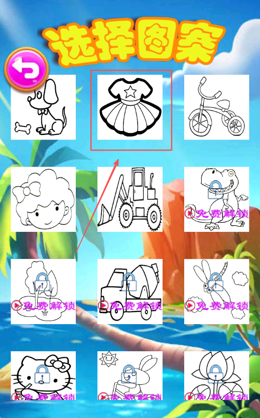 1、在图案库中选择喜欢的画作后,通过仔细观察轮廓线了解整体构图,然后开始自己的创意涂色创作过程。