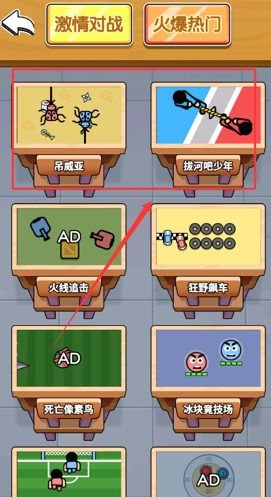 双人斗智对决休闲娱乐类游戏,拥有精美画风与可爱角色造型,支持双人对战或人机对战模式,通过多款小游戏较量依据胜负次数评定冠军地位,带来趣味性极强的联机体验,让玩家沉浸其中享受紧张刺激的竞技乐趣。