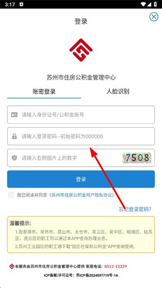 3、在页面输入身份证号或公积金账号、登录密码,勾选同意协议后,点击登录按钮完成登录操作。