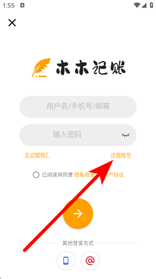 3、在登录页面,点击注册账号,进入注册页面。