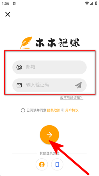 4、输入邮箱和验证码后,点击箭头,完成注册。