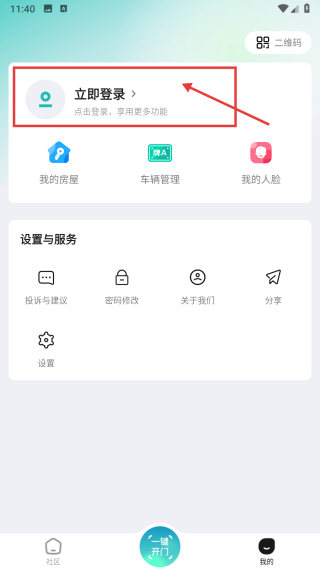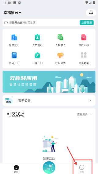 1、打开社区服务类APP,点击底部我的选项,进入个人中心页面。