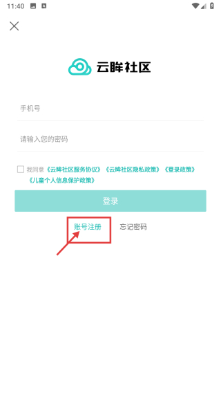 3、在登录界面,点击账号注册选项,进入注册新账号页面。