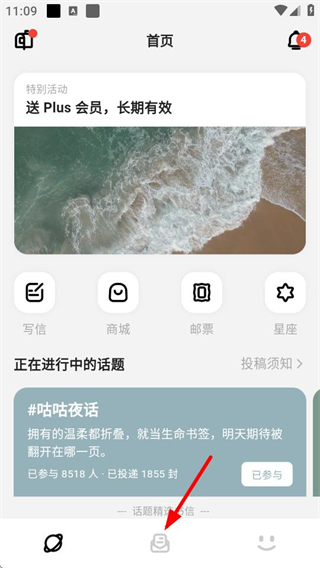 1、在首页点击底部信箱图标,进入信箱页面。