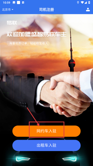 1、打开出行服务类APP,点击网约车入驻选项,进入司机加盟页面。