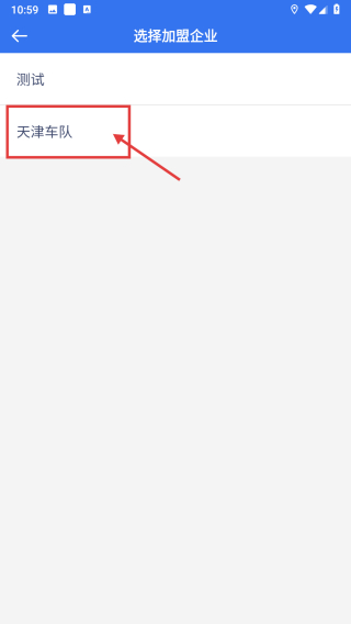 4、在选择加盟企业页面,选择天津车队,完成加盟企业选择。
