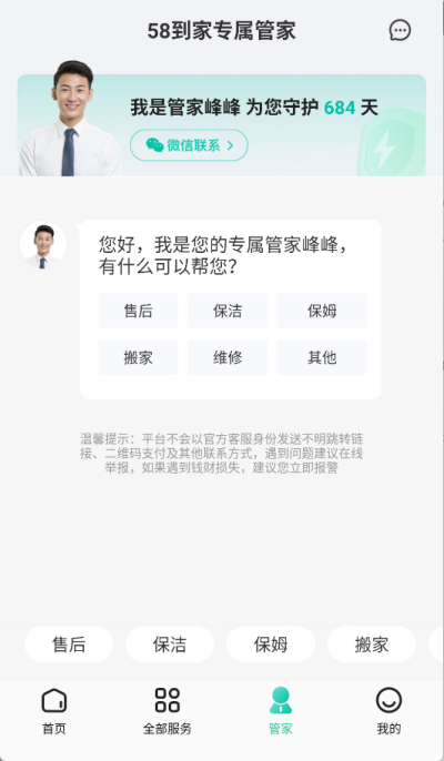 4、1对1服务:家政顾问1对1服务,快速响应需求更省心;