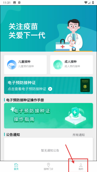 1、打开疫苗接种类APP,点击底部我的选项,进入个人中心页面。