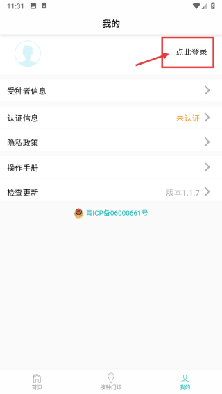 2、在个人中心页面,点击点此登录选项,进入登录界面。