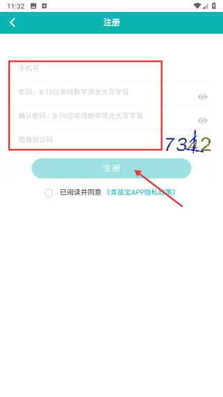 4、在注册页面,输入手机号、密码和图像验证码后点击注册按钮,完成账号注册操作。