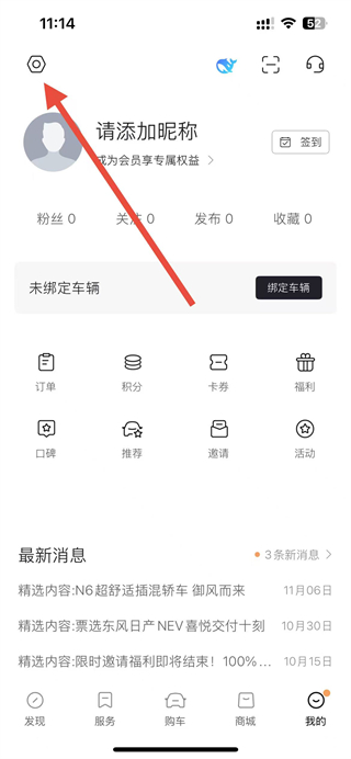 1、打开日产智联app,点击底部导航栏中我的选项进入个人中心页面。