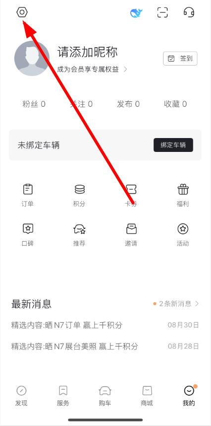 2、在个人中心页面,点击左上角设置图标进入设置界面。