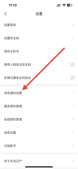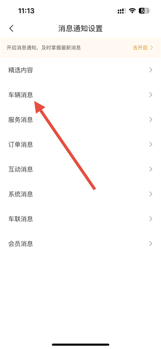 3、在消息通知设置页面,点击车辆消息选项,进入车辆消息页面。