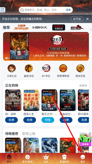 1、打开万达电影app,在首页点击右下角我的选项,进入个人页面。
