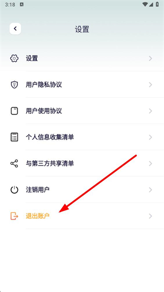 3、在设置页面底部,点击退出账户选项。