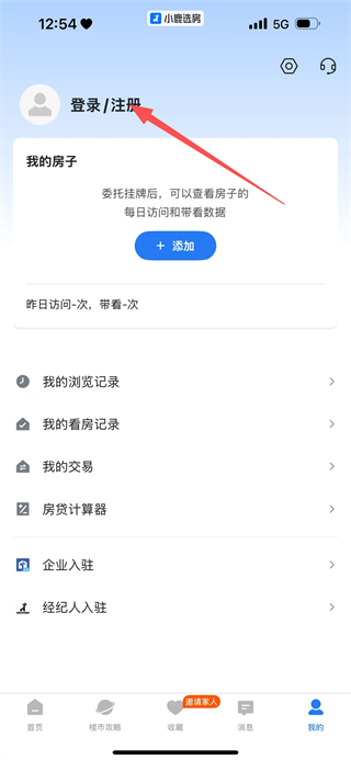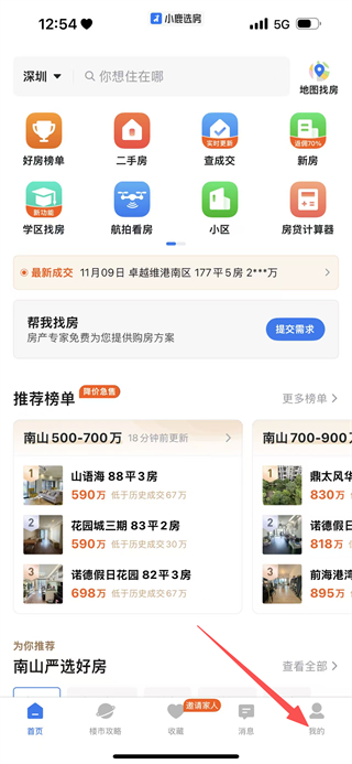 1、在小鹿选房首页,点击底部我的,进入个人页面。