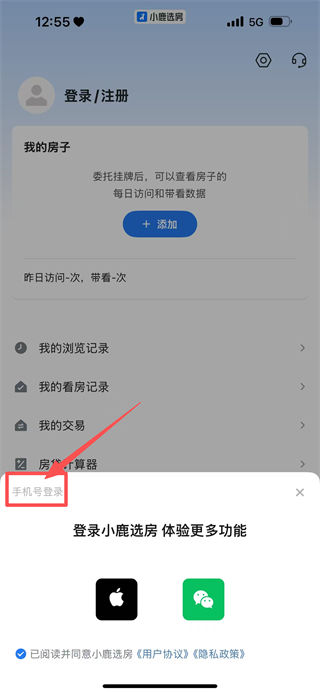3、在登录选项弹窗中,点击手机号登录,进入登录方式选择页面。