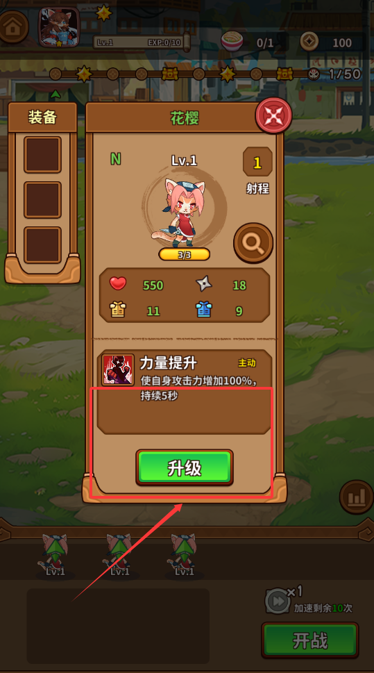 1、在游戏初期需要着重收集相同角色进行合成进化,通过集齐三个相同忍者能够实现升星突破。