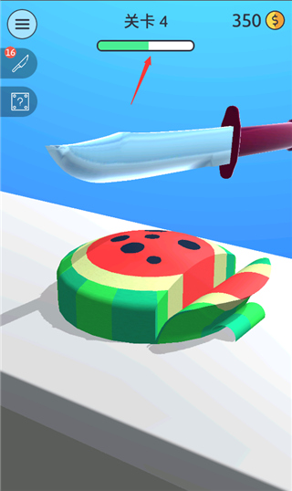 2、持续切割各类物品积累能量数值,直至上方进度条完全充满即可通过关卡挑战。