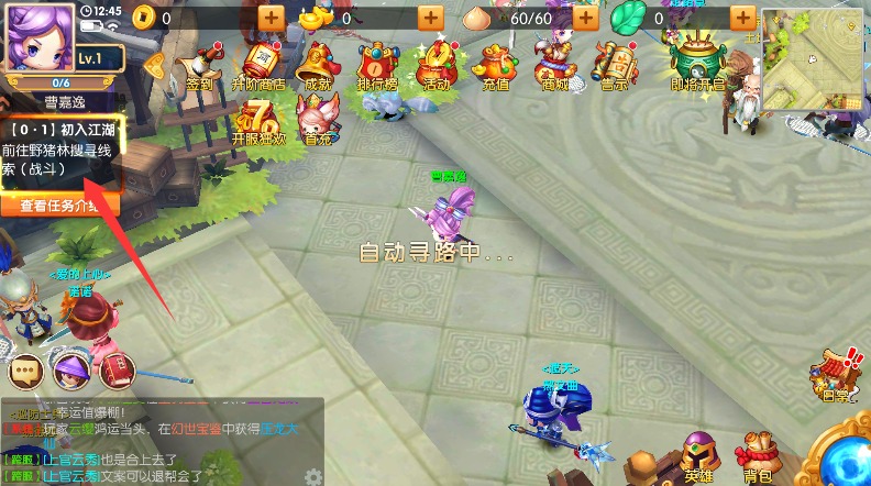 3、进入主界面点击左侧任务栏功能图标,系统将自动追踪并引导任务目标路线。