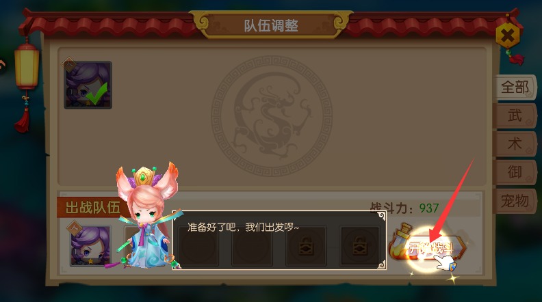 4、从角色库中组建出战队伍完整阵容,点击开始战斗迎接回合制策略对决。