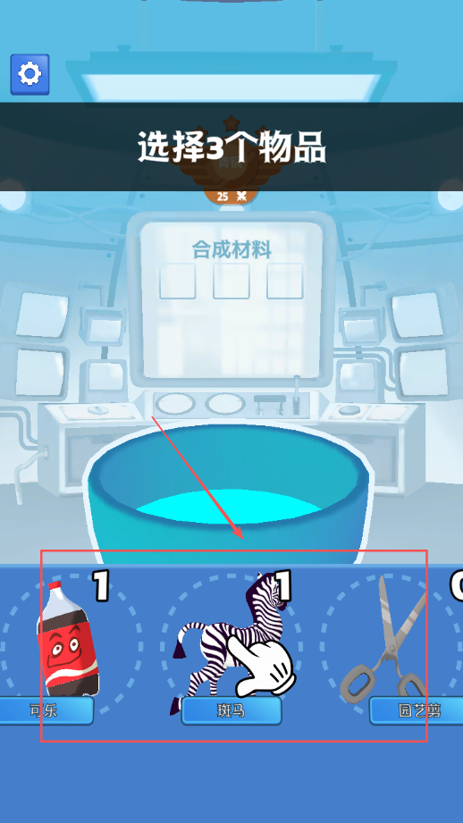 1、选择三个不同物品开始合成创造过程,了解基本规则和操作方法,熟悉界面布局和功能设置,为后续游戏进程做好准备和基础学习。