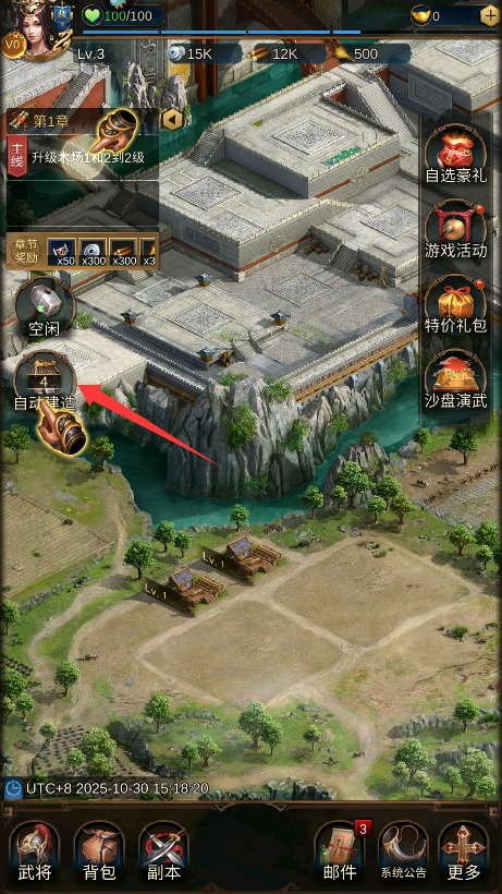 2、点击自动建造功能选项解放双手,系统将按照预设顺序升级城内建筑设施。