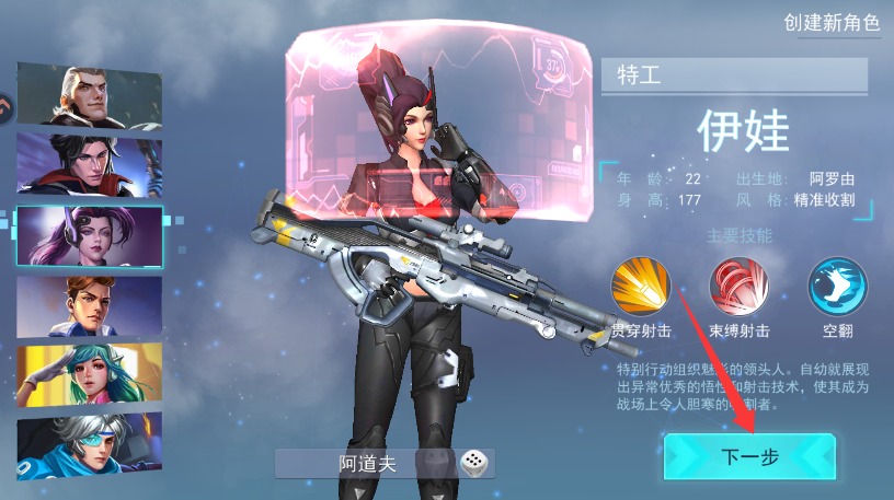 2、选择心仪角色并输入专属个性名称,点击下一步完成身份创建开启冒险征程。