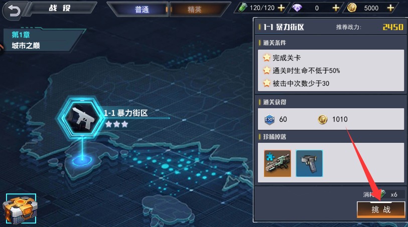 4、选择战役模式中的街区地图点击挑战,带领你的小队展开激烈枪战对决。