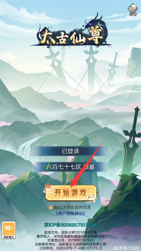 1、初次启动游戏后点击开始游戏按钮,即可踏入这片充满机缘的修仙游戏世界。