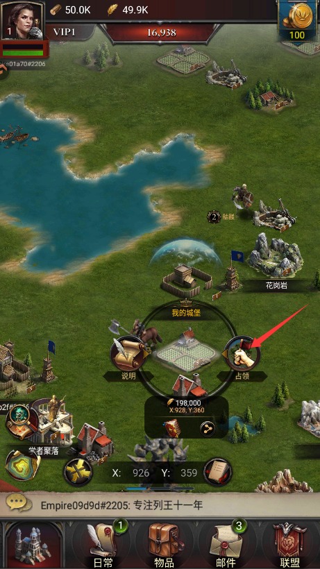 3、在世界地图上选择敌方城堡点击占领目标,逐步扩张你的领土统治版图。