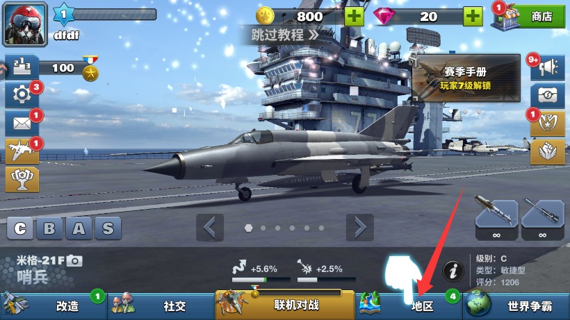 1、初次进入游戏后首先选择作战地区范围,不同区域对应着独特的空中战场环境挑战。