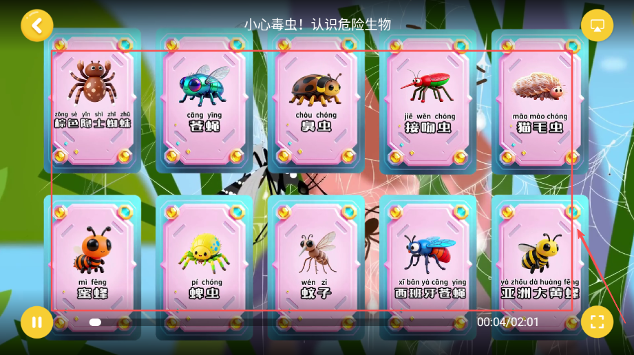 2、画面设计精美可爱生动活泼有趣,卡通形象亲切有趣,吸引孩子注意力,增强学习趣味性,提升参与积极性。