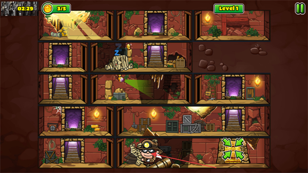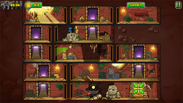 4、控制角色解开右下角的逃生通道进行逃离,根据通关用时和金币获取数量进行星级评定。