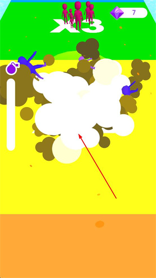 3、让炸弹人爆炸,清除前方的紫色小人,产生大量烟雾。