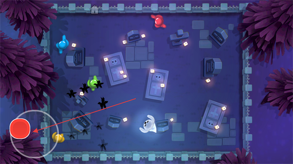 1、操控角色在墓地场景中移动,躲避幽灵的追击,同时利用墓碑等障碍物进行掩护。