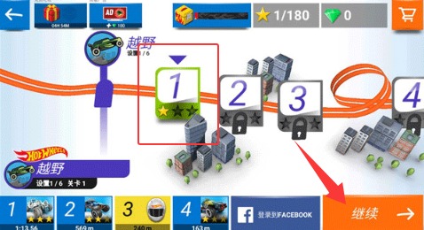 2、在关卡地图中选择想要挑战的赛道,每条赛道都有独特的弯道设计和难度分级。