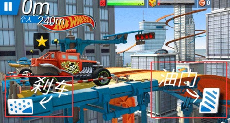 3、左手控制左侧刹车按钮平稳过弯,右手操控右侧油门调节速度保持最佳行驶路线。