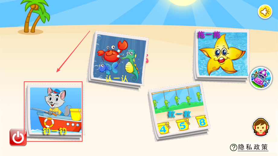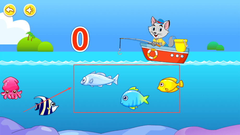 1、通过触屏操作进行钓鱼,捕获标有数字的海洋生物,锻炼手眼协调能力,提升精细动作技能,培养专注力。