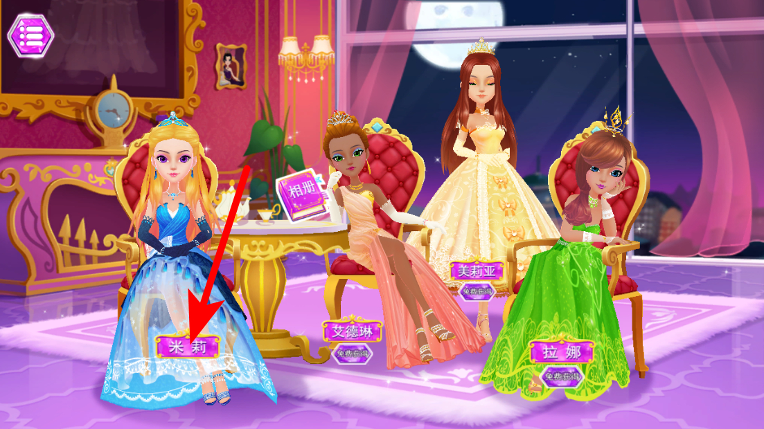1、在公主的梦幻舞会界面,点击选择角色如米莉,进入角色装扮流程。
