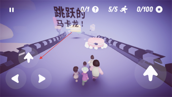 3、利用左侧的方向键和跳跃键,控制人群躲避障碍、跨越鸿沟,应对跳跃的马卡龙等关卡挑战。