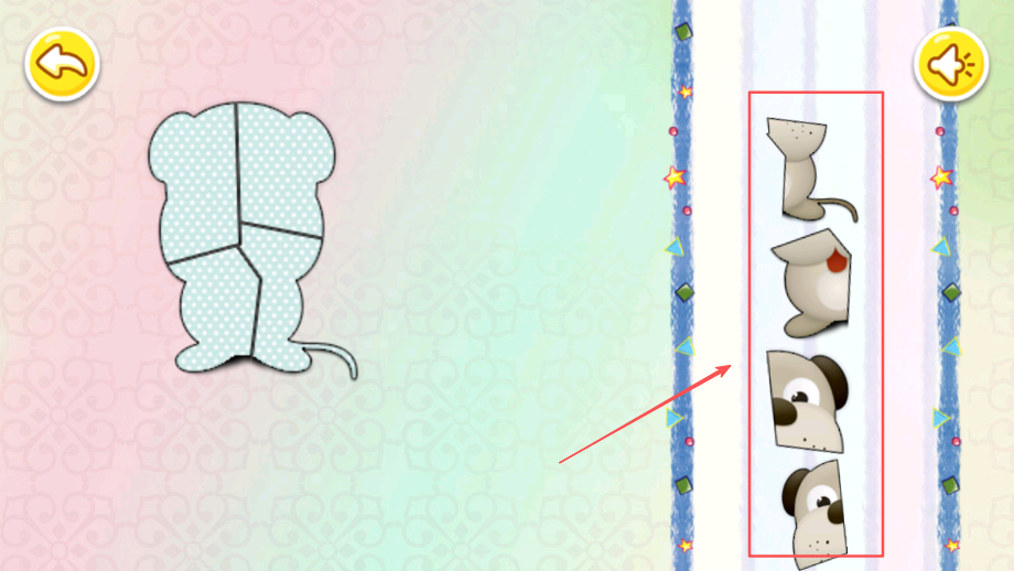 2、观察拼图碎片形状和颜色,拖动到正确位置,完成图案拼接,培养观察分析能力,提升空间想象力和逻辑思维能力。