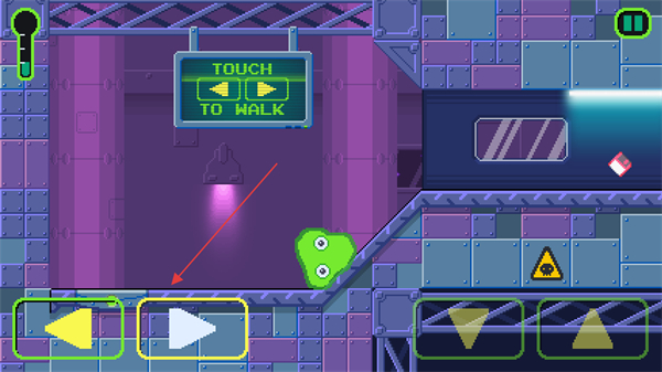 1、在游戏中通过左下角的左右箭头来控制粘液的移动。