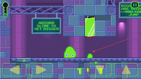 2、通过点击右下角的向上箭头,使粘液跳上台阶等障碍物。